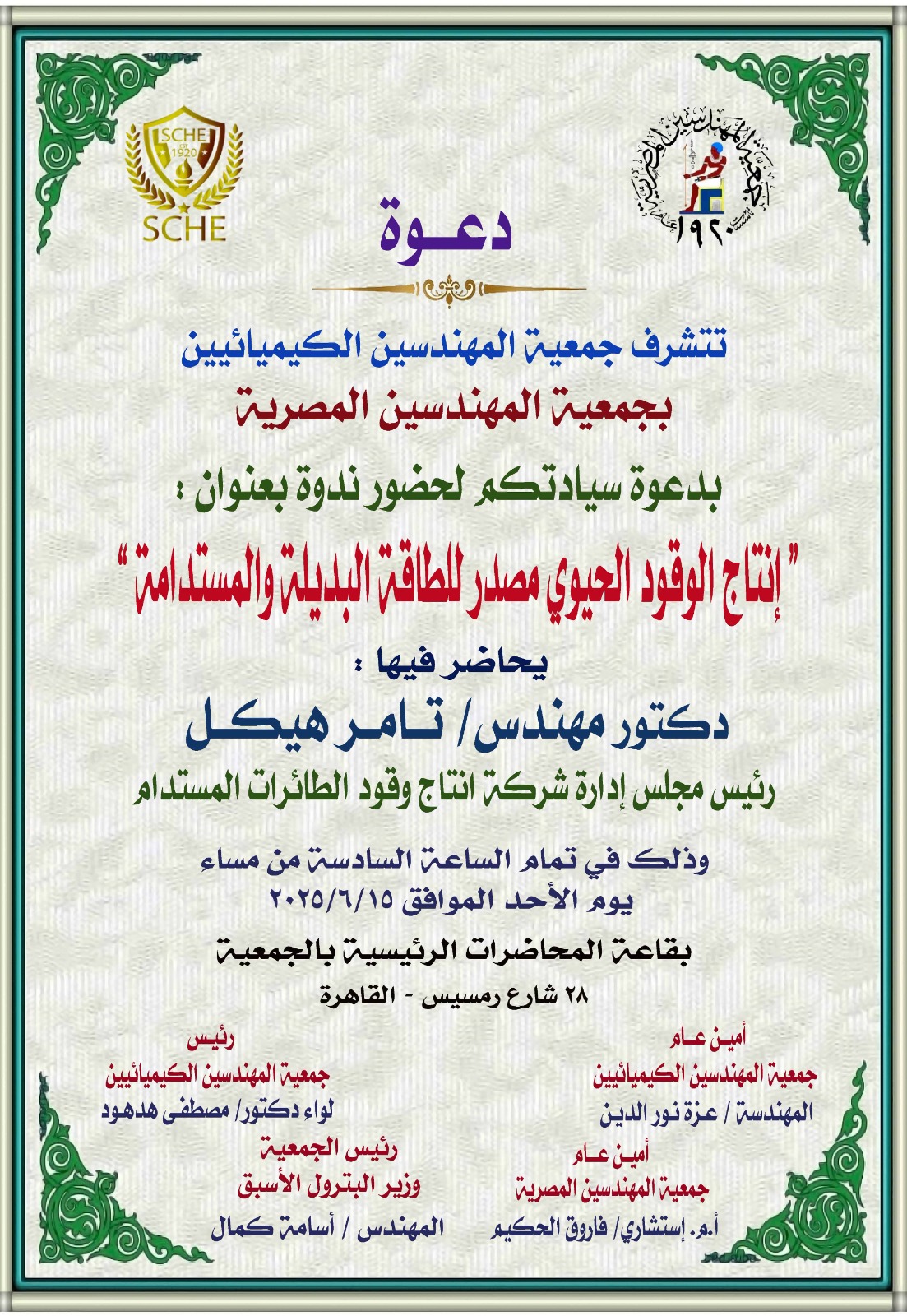 تتشرف جمعية المهندسين الكيميائيين بجمعية المهندسين المصرية